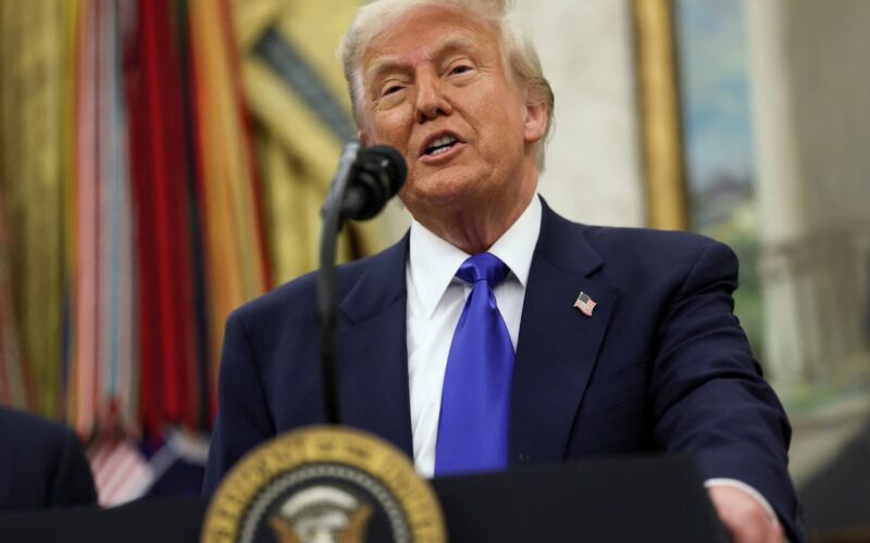 U.S. President Donald Trump announces the NFL draft will be held in Washington, at the White House in Washington, D.C., U.S., May 5, 2025.
