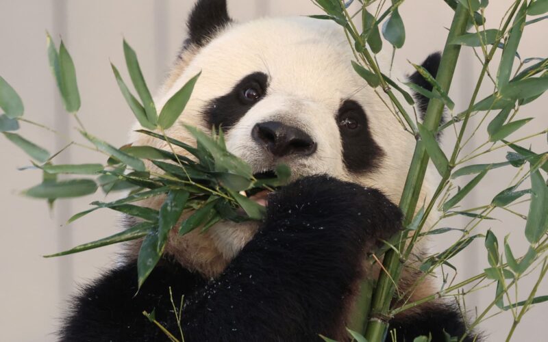 Giant panda Bao Li chews on bamboo during his public debut at the Smithsonian’s National Zoo in Washington, U.S., January 24, 2025.
