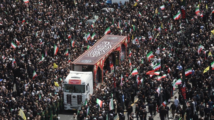 Iran held a funeral procession for top military commanders and scientists who were killed in this month’s Israeli air strikes, in a public show of defiance against the US and Israel.
