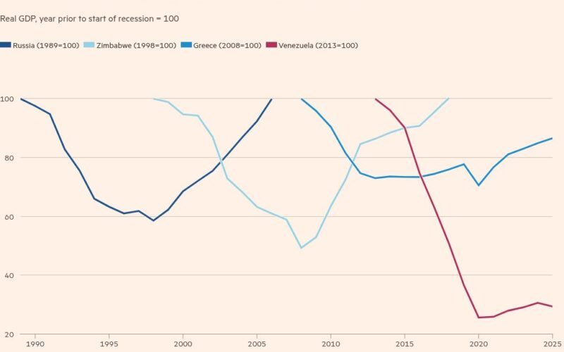 The economy cratered, shrinking 26 per cent between 2008 and 2013. Unemployment soared to 28 per cent.