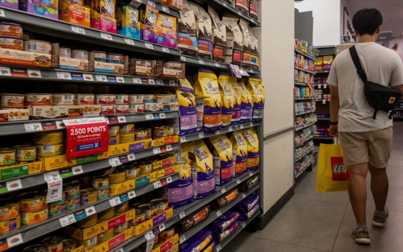 People shop for pet supplies at a pet retail store in Manhattan on August 12, 2025 in New York City.
