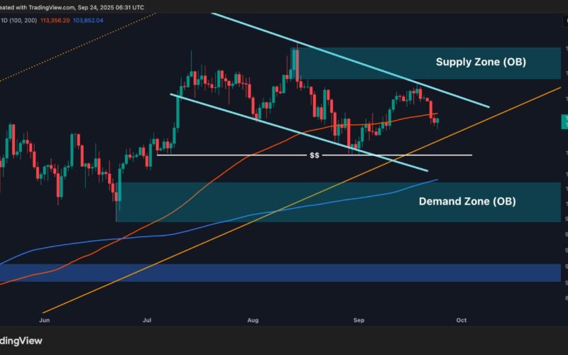On the daily timeframe, Bitcoin was rejected from the supply zone at $118K, which aligns with the descending channel structure.