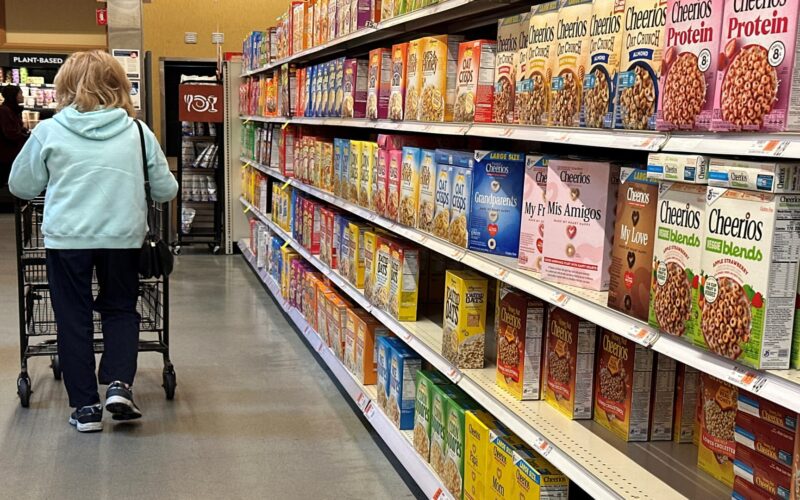 Breakfast cereals are displayed for sale in Medford, Massachusetts, U.S., April 22, 2025.