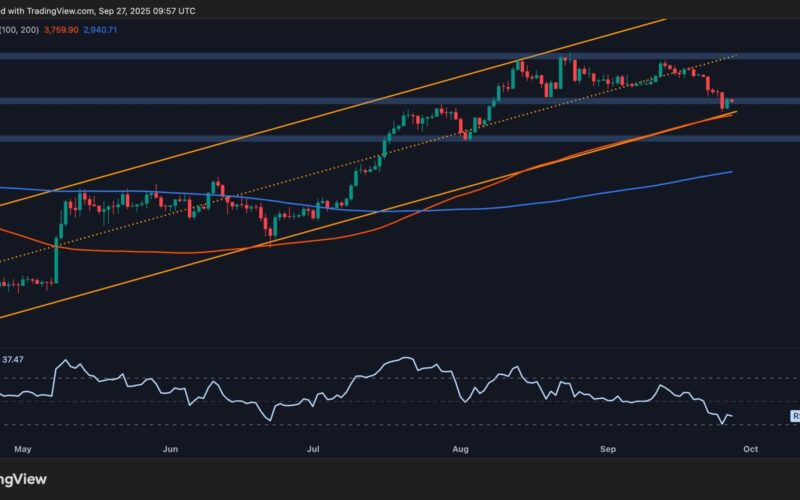 On the daily chart, ETH has lost the midline of its ascending channel, breaking below the dotted trendline that had supported the price since August. The asset is now testing the $4,000 key level, which aligns closely with the lower boundary of the channel and the 100-day moving average located around the $3,800 level.