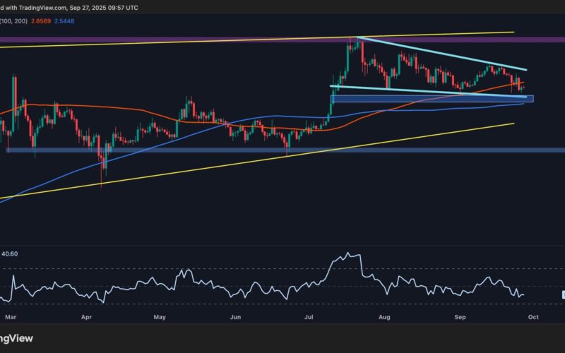 If this area holds, we could see a bounce and a potential challenge of the wedge’s upper boundary near $3.10. A breakout from the wedge would open the door toward the key $3.60 level. But if the support gives out, XRP could decline to the $2.20 zone, which aligns with the lower boundary of the large ascending structure.