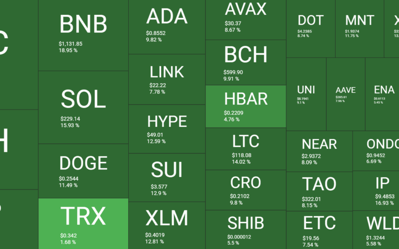 Although it has stopped there, at least for now, BTC still stands above $120,000 as of press time. This means that it has added more than $10,000 since last Friday and is now inches away from a new all-time high. Speaking of new records, it’s worth highlighting BNB, which went into uncharted territory earlier today at over $1,100.