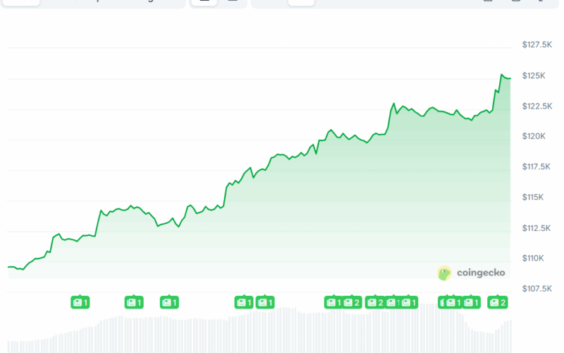 Following a turbulent end to September, the primary cryptocurrency has kicked off “Uptober” in style, surging by more than $11,000 since the beginning of the month. Just a few hours ago, it surpassed the milestone of $125,000 and reached a new all-time high of approximately $125,500 (according to CoinGecko’s data). Shortly after, it slightly retraced to its current value of $125,000.