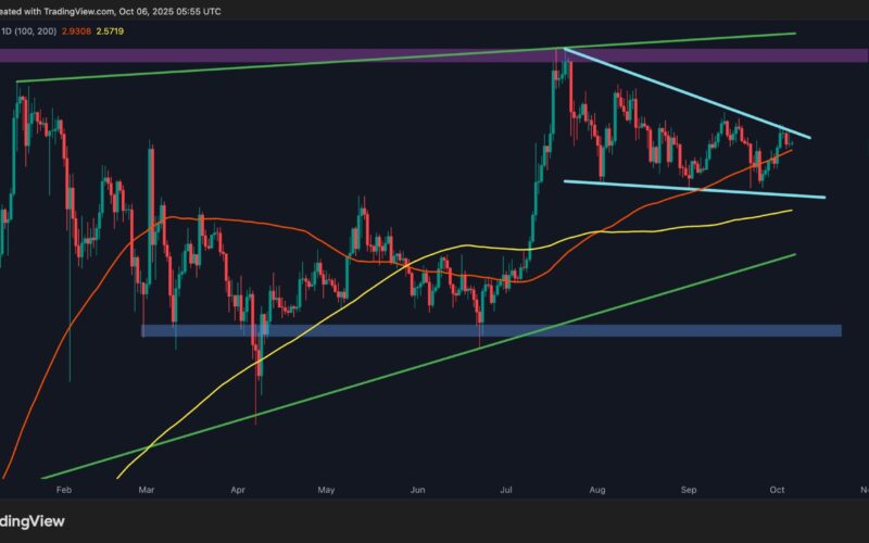 Currently, the market is retesting the upper boundary of this wedge near $3.05–$3.15, which aligns with a key supply zone that has repeatedly rejected previous attempts at continuation. A confirmed breakout above this confluence could open the path toward $3.35 and eventually $3.60, where the higher-timeframe liquidity pool and major resistance await.
