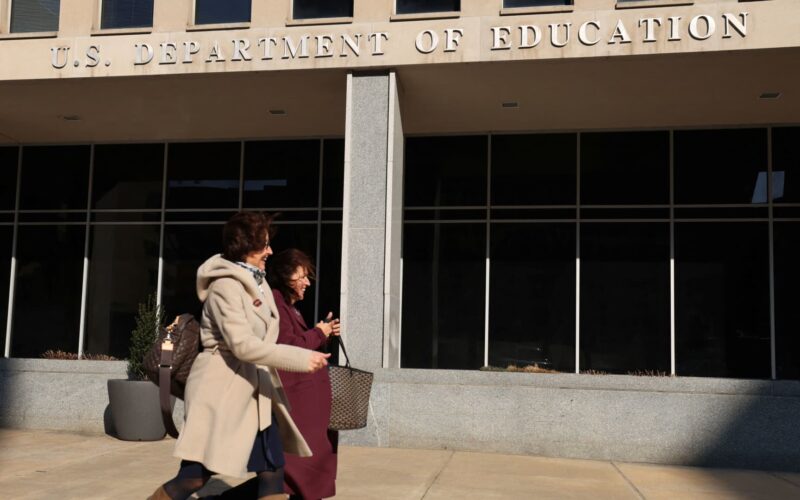 People walk in front of the the U.S. Department of Education, amid reports that U.S. President Donald Trump’s administration will take steps to defund the federal Education Department, in Washington, U.S., February 4, 2025.