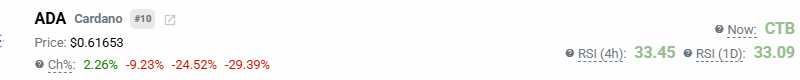 As of this writing, ADA is worth around $0.62 (per CoinGecko’s data), or a 24% decline on a weekly scale. Its market capitalization has plunged to roughly $22.5 billion, meaning it is now the 11th-biggest cryptocurrency.