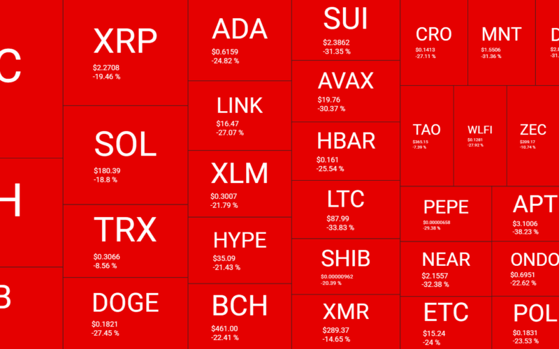 This puts its weekly losses at over 13%. While this might sound painful, because it is, the situation with many altcoins is a lot worse, with massive losses from the likes of DOGE (-27%), ADA (-25%), LINK (-27%), XLM (-22%), HYPE (-21.5%), and many others.