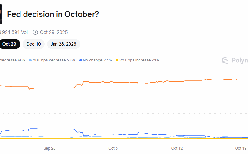 Grok, the AI chatbot built into the social media platform X, is also optimistic that the alts may experience a significant rally soon. It claimed that the main catalyst for that would be the potential lowering of interest rates in the United States. Fed’s Chair Jerome Powell recently hinted that the central bank will decrease the benchmark, thus making money-borrowing cheaper and pushing investors towards riskier assets such as cryptocurrencies. According to Polymarket, the odds of a rate cut of 0.25% on October 29 are 96%.