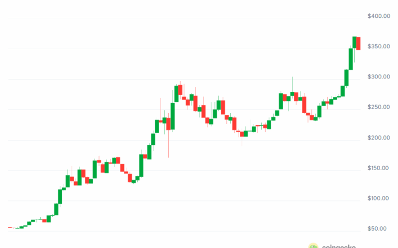 ZEC started its upward move towards the end of September, when the price was hovering around $50. In the following weeks, its valuation was gradually climbing, and just a few hours ago, it reached a seven-year high of $370. Shortly after, ZEC registered a slight decline to the current $350 (per CoinGecko’s data), representing a staggering 520% increase on a monthly scale.