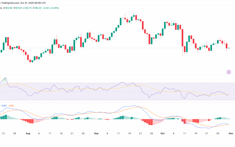 At press time, the price sits at around $185 after a 4% decline over the past day.