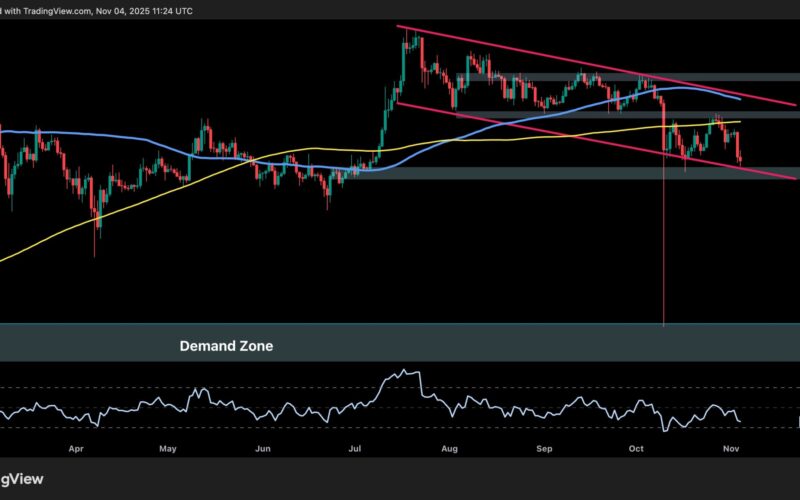 On the USDT pair, XRP is on the verge of breaking below the descending channel support and is also testing the demand zone around the $2.20 level. The asset has also been repeatedly rejected by both the 100-day and 200-day moving averages, both of which are located above the price, and is now printing a series of lower highs and lower lows.