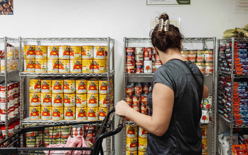A resident browses donated food items in the pantry at Feeding South Florida in Pembroke Park, Florida, US, on Friday, Oct. 31, 2025.