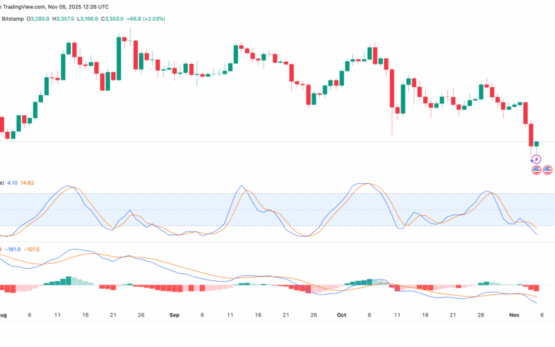Ethereum (ETH) has come under pressure this week, dropping to under $3,200 during yesterday’s market-wide sell-off. The asset is down over 6% in the last 24 hours and more than 17% in the past seven days, based on data from CoinGecko.