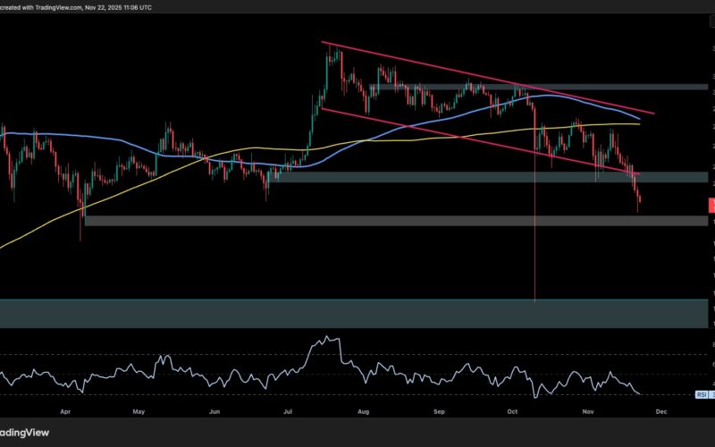 XRPUSDT broke down decisively from the descending channel structure and is now trading below the $2 key support level, which has now turned into a resistance zone. The recent move has been sharp, with the price falling toward the next major demand area around $1.75.