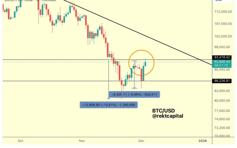 Last week, BTC climbed above $90,000 after falling below $81,000 in mid-November. It reached over $93,000 before moving sideways between $91,000 and $92,000.