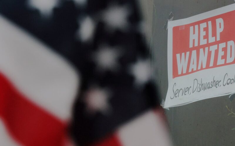 A “Help Wanted” sign hangs in restaurant window in Medford, Massachusetts, U.S., January 25, 2023.