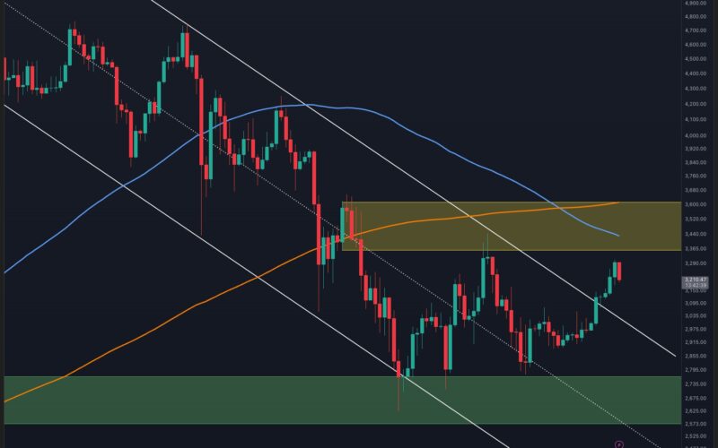 On the 4-hour chart, the structure provides a clearer view of the recent recovery. The price found solid support at the lower boundary of the wedge at $2.7K, confirming strong demand at that level. From there, Ethereum rallied steadily toward the upper boundary of the wedge $3.3K and has now slightly broken above it.
