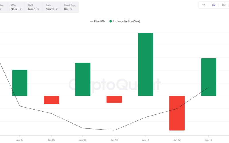 Many technical indicators signal that a move in favor of the bears is a plausible option. Over the past week, inflows into exchanges have surpassed outflows, hinting investors may be preparing to cash out.