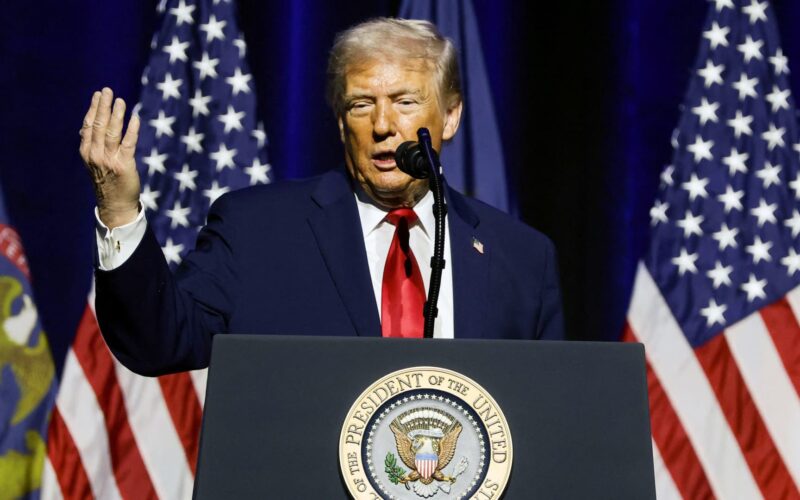 U.S. President Donald Trump speaks at the Detroit Economic Club in Detroit, Michigan, U.S., January 13, 2026.