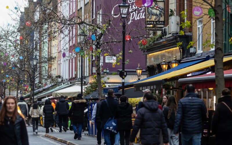 Restaurants and pubs on James Street in London, UK, on Friday, Dec. 13, 2024.