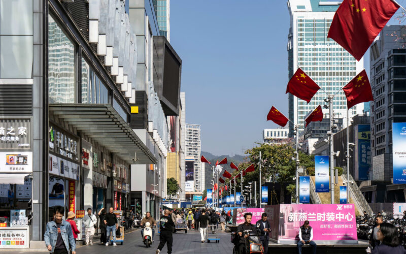Pedestrians in the Huaqiangbei electronics market area in Shenzhen, China, on Wednesday, Jan. 14, 2026.