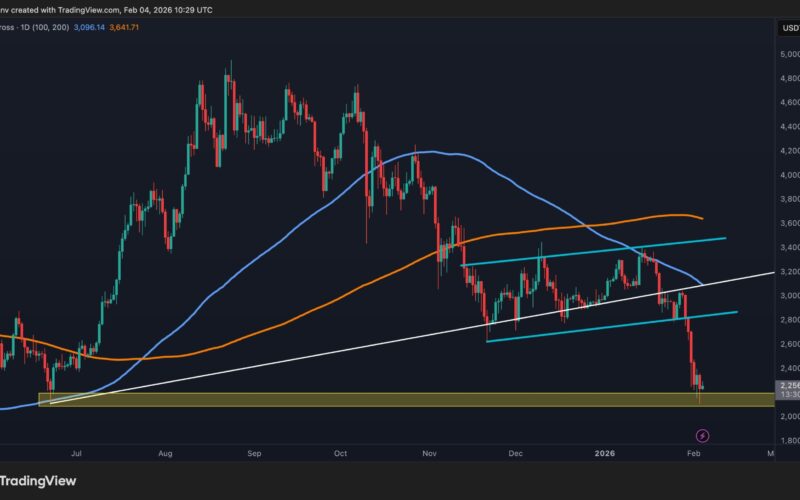 On the daily timeframe, Ethereum has reached a crucial support zone around the $2K area, which aligns with a major prior yearly low and a historically significant demand region. This level has previously acted as a strong base for accumulation, and the market’s reaction here suggests growing sensitivity among participants.