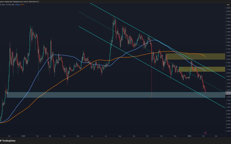 Following the latest rejection, the asset accelerated lower and is now approaching the $1.3 critical support, which also aligns with the broader demand zone visible on the daily timeframe. This confluence increases the probability of at least a short-term reaction, as short sellers may begin to take profits and reactive buyers step in.