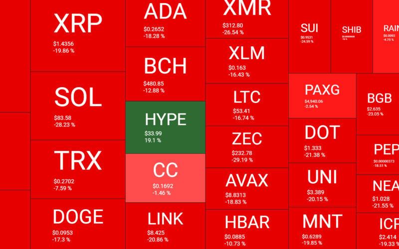Despite rebounding to $67,000 as of press time, BTC is still nearly 20% down weekly. Many altcoins have produced even more significant declines, such as ETH (-28%), BNB (-23%), LINK (-21%), XMR (-26%), and others. HYPE, on the other hand, continues to defy the overall trend and has soared by 19% within the same timeframe.