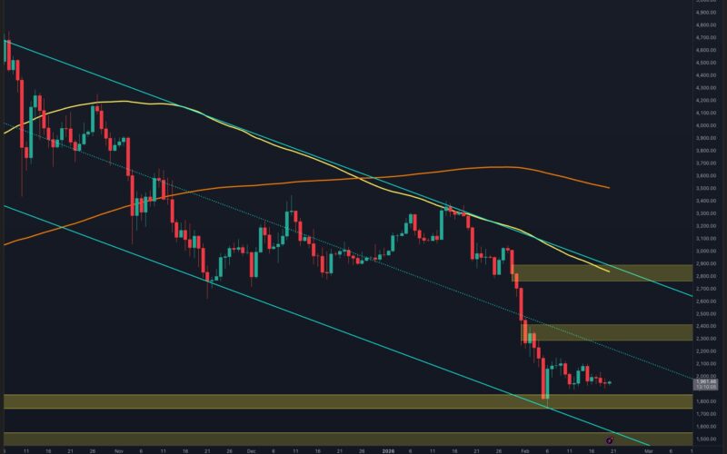 The consolidation remains confined between the channel’s mid-boundary above and the $1.8K demand zone below. Each attempt to push higher has been capped before reclaiming a meaningful resistance cluster, while sellers have failed to generate a decisive breakdown beneath the base. Until one of these boundaries is violated, the dominant expectation is continued range-bound fluctuation.