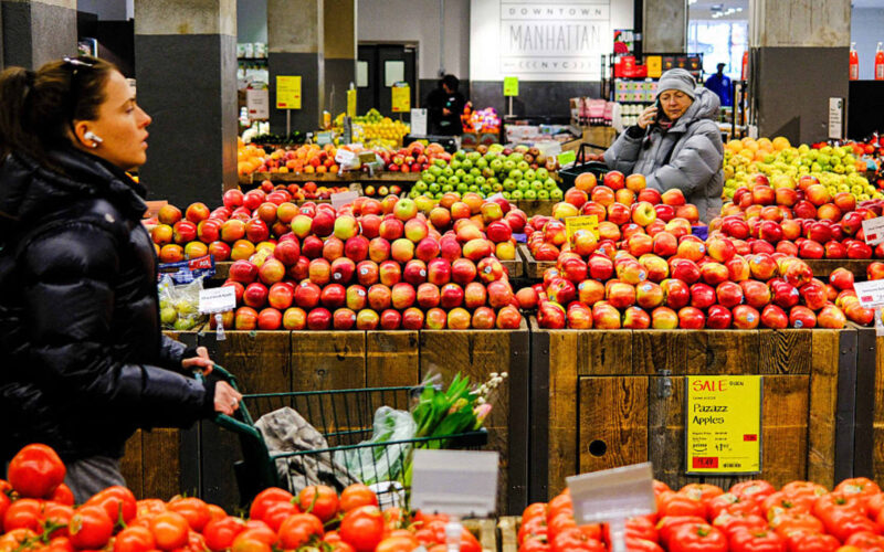 Customers shops for fruit in a supermarket in New York on Jan. 22, 2026.