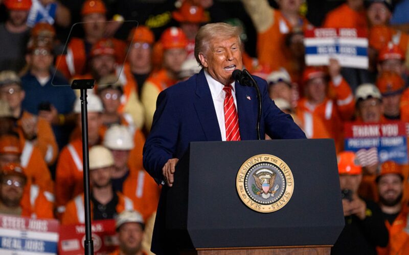 President Donald Trump speaks to supporters during a rally at the US Steel-Irvin Works on May 30, 2025 in West Mifflin, Pennsylvania.