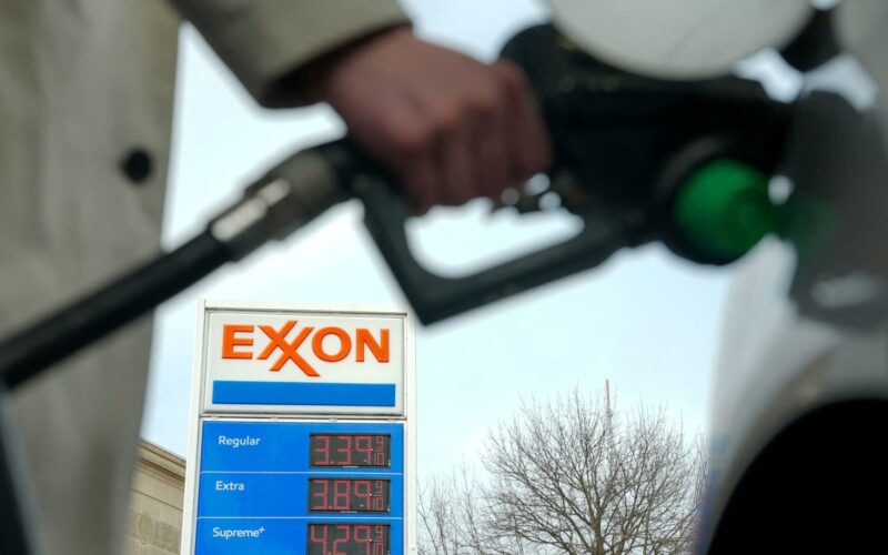 A man pumps gas at an Exxon station as the price of oil and gas has surged amid the U.S.-Israeli conflict with Iran, in Washington, D.C., U.S., March 5, 2026.