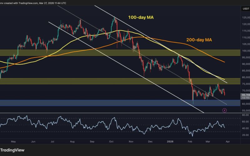 With the RSI also sitting low, near the oversold region, the short-term outlook does not look good for buyers, as a channel breakdown with momentum could lead to another drop toward the $60k zone and make the market anxious once again.