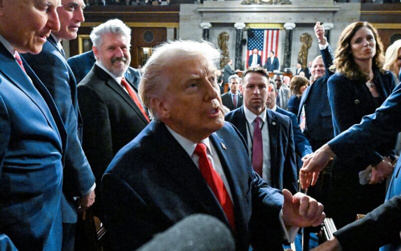 President Donald J. Trump exits the House Chamber after delivering the first State of the Union address of his second term to a joint session of Congress in the House Chamber of the U.S. Capitol in Washington, Feb. 24, 2026.