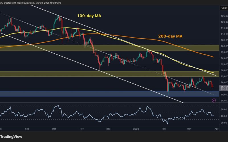 Bitcoin (BTC) continues in a broad consolidation phase following the steep declines earlier this year. The asset remains confined in a horizontal range that signals short-term indecision among market participants. While attempts to retest higher resistance levels around $75k have been met with selling pressure, BTC’s support near $60k has so far held, defining the lower boundary of the current range.
