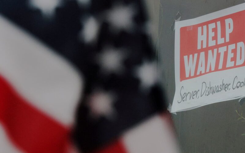 A “Help Wanted” sign hangs in restaurant window in Medford, Massachusetts, U.S., January 25, 2023.