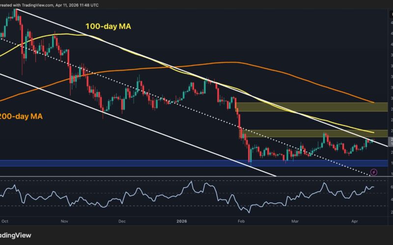 The descending channel that has defined ETH’s price action since the October 2025 highs is on the verge of breaking to the upside on the daily chart. Both the 100-day MA (~$2.4k) and 200-day MA (~$2.9k) also continue to decline overhead and close in on the price.