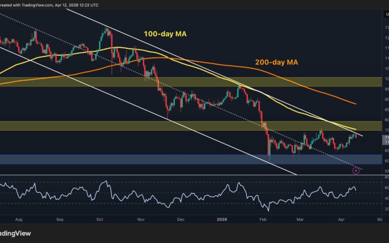 A confirmed close above $75k would invalidate the bearish scenario and lead to the price making a run toward the $80k level. On the other hand, a deeper drop and breakdown below the lower trendline would be more concerning, and could shift focus back to the $60k daily support zone.