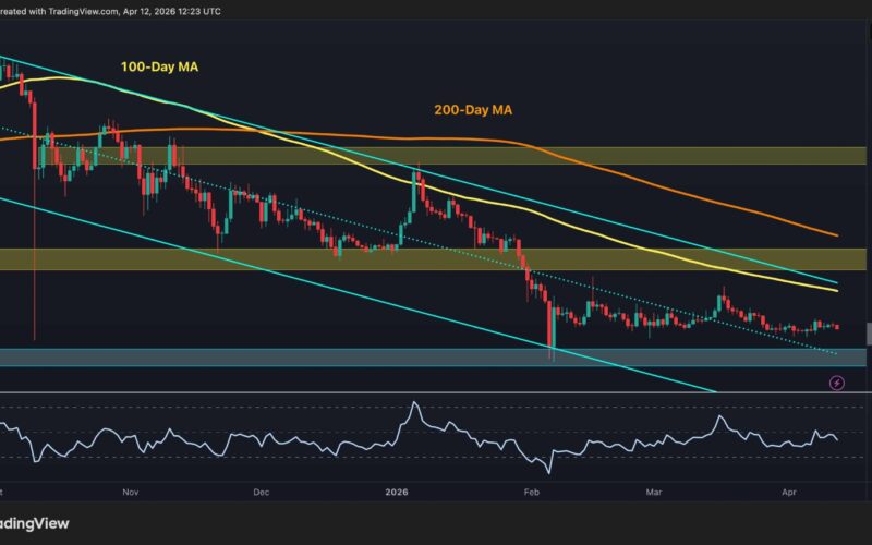 The structure on the USDT pair remains firmly bearish. XRP is trading inside a descending channel with both the 100-day MA (~$1.60) and 200-day MA (~$1.90) declining well overhead. The asset has been grinding lower in a slow bleed that has now brought it uncomfortably close to the $1.20 support zone.