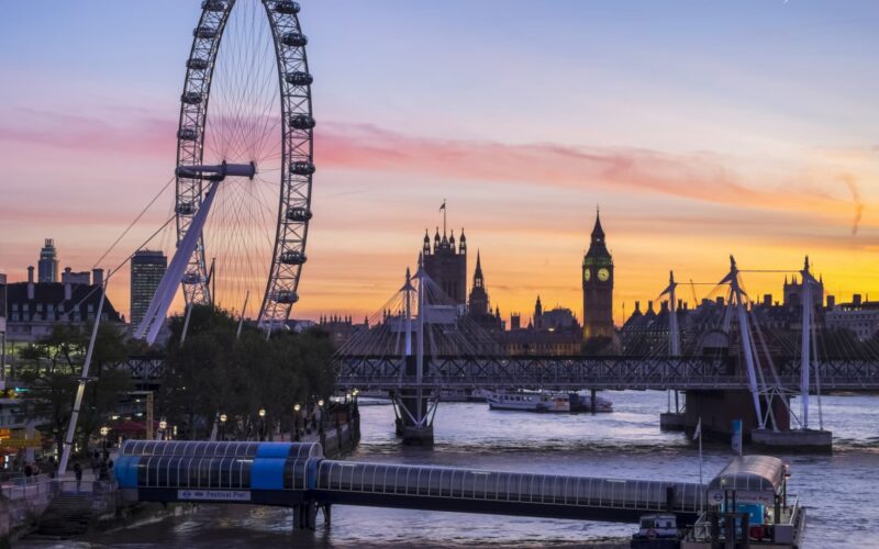 Millennium Wheel And Skyline At Sunset. London, England.