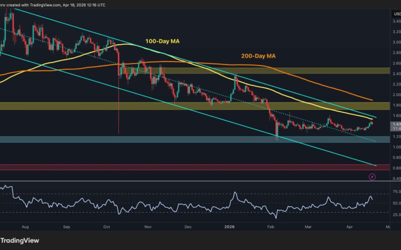 The RSI has recovered above 50 from deeply oversold levels in February, which is an improvement but still short of anything that signals genuine trend momentum. The $1.80 supply band remains the more significant resistance above, and it needs to be reclaimed on a closing basis before any bullish case can be made with conviction.