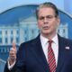 US Treasury Secretary Scott Bessent speaks during a press briefing in the Brady Briefing…